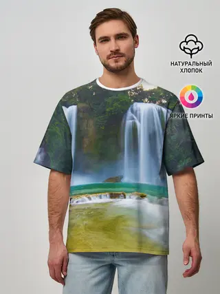 Мужская футболка оверсайз / водопад