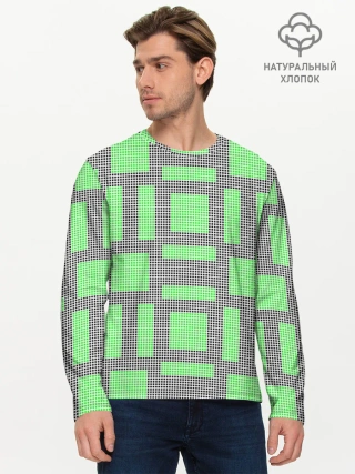 Мужской лонгслив базовый / Пиксели зеленые
