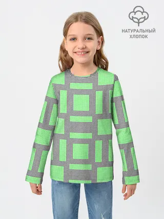 Детский лонгслив / Пиксели зеленые