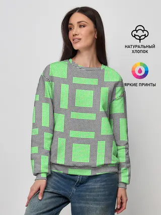 Женский свитшот / Пиксели зеленые