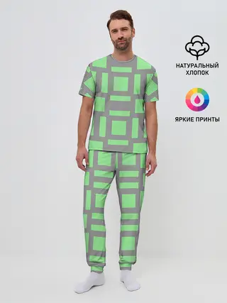 Мужская пижама с брюками / Пиксели зеленые