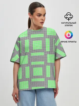Женская футболка оверсайз / Пиксели зеленые