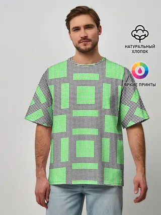 Мужская футболка оверсайз / Пиксели зеленые