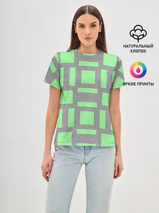 Женская базовая футболка / Пиксели зеленые