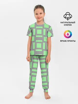 Детская пижама с брюками / Пиксели зеленые