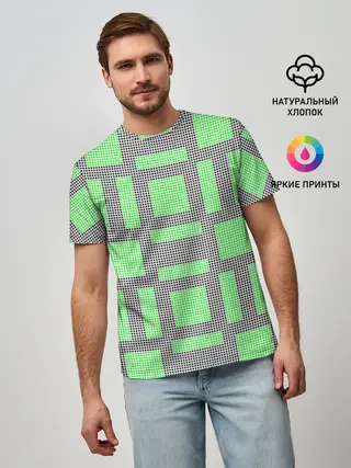 Мужская базовая футболка / Пиксели зеленые