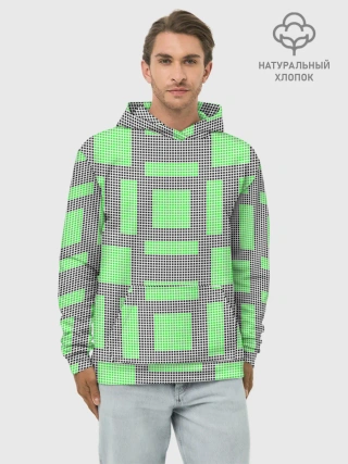 Худи мужской база хлопок / Пиксели зеленые