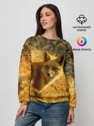 Лонгслив женский. Хлопок / Абстрактная лиса