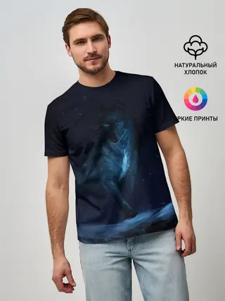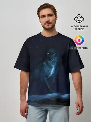 Мужская футболка оверсайз / Зимний волк