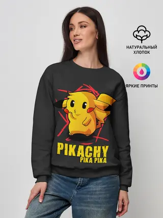 Лонгслив женский. Хлопок / Pikachu Pika Pika