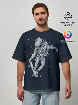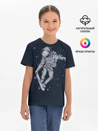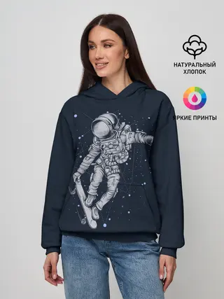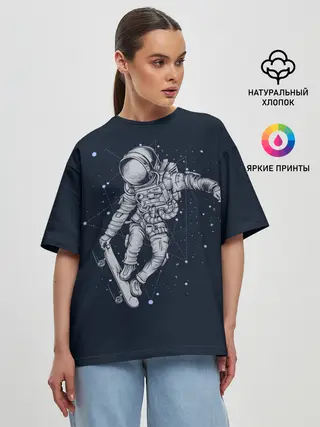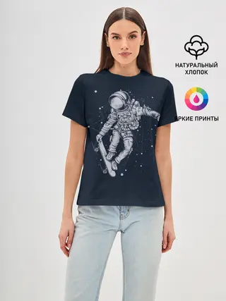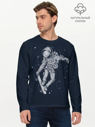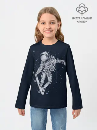 Лонгслив женский. Хлопок / Космонавт на скейте