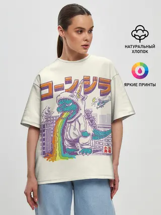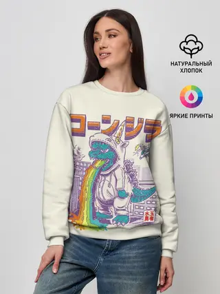 Лонгслив женский. Хлопок / Годзилла Единорог