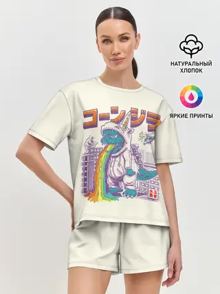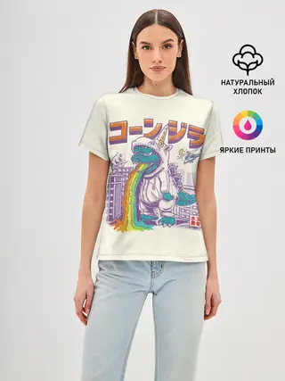 Лонгслив женский. Хлопок / GODZILLA КУШАЕТ | ГОДЗИЛЛА