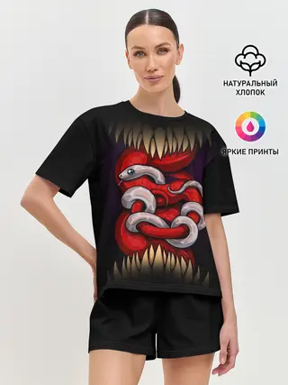 Женская футболка оверсайз / monster and snake