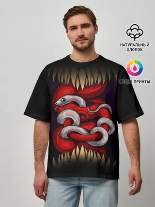 Мужская футболка оверсайз / monster and snake