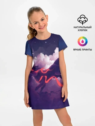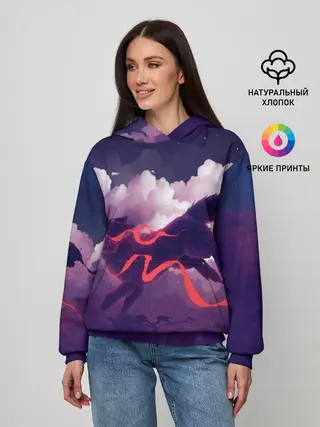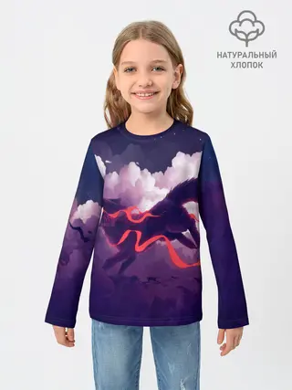 Лонгслив женский. Хлопок / Лиса бежит по облакам