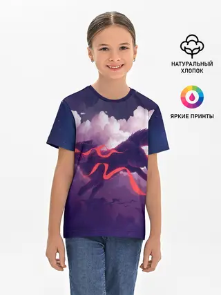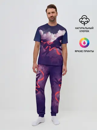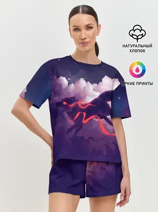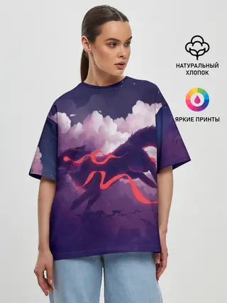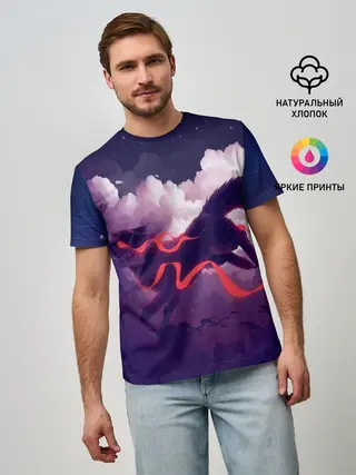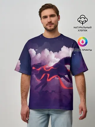 Мужская футболка оверсайз / Лиса бежит по облакам