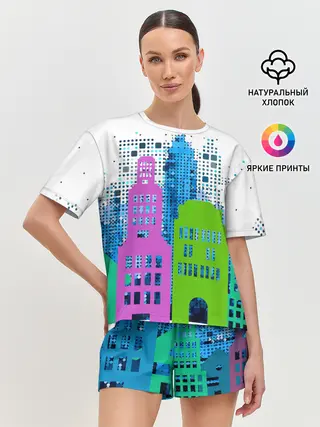 Лонгслив женский. Хлопок / Закат в Нью Йорке