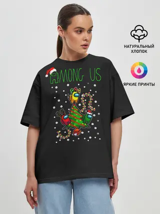 Женская футболка оверсайз / Among Us Happy New Year