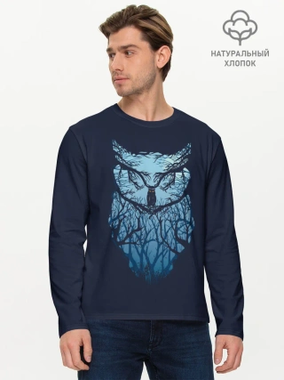 Мужской лонгслив базовый / Сова в деревьях