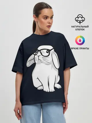Женская футболка оверсайз / Кролик Хипстер