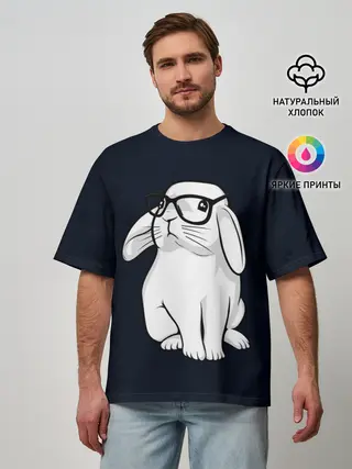 Мужская футболка оверсайз / Кролик Хипстер