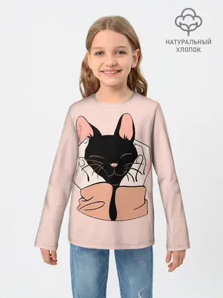 Лонгслив женский. Хлопок / Кошка с голубыми глазами