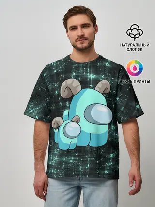 Мужская футболка оверсайз / AMONG US - С РОЖКАМИ