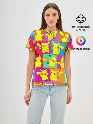 Лонгслив женский. Хлопок / Pikachu Pika Pika