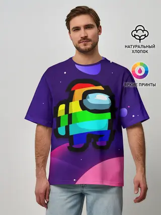 Мужская футболка оверсайз / AMONG US - RAINBOW SPACE
