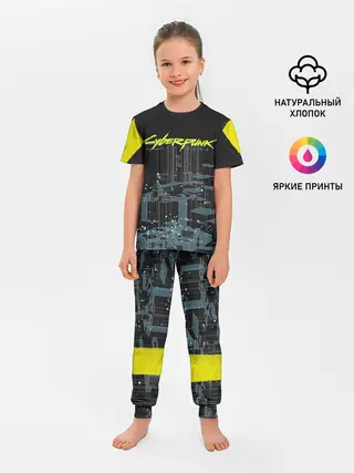 Детская пижама с брюками / Город CYBERPUNK 2077