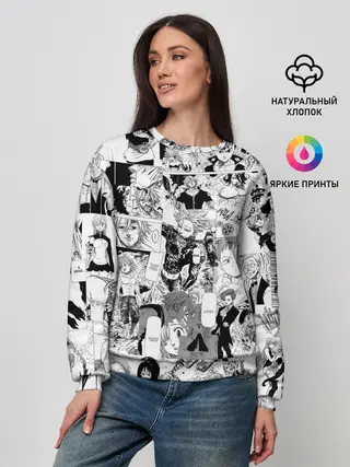 Лонгслив женский. Хлопок / 7 СМЕРТНЫХ ГРЕХОВ. Манга-паттерн