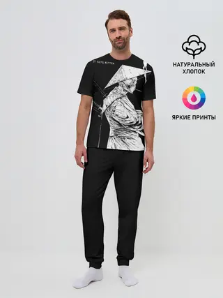 Мужская пижама с брюками / Самурай скелет с трубкой