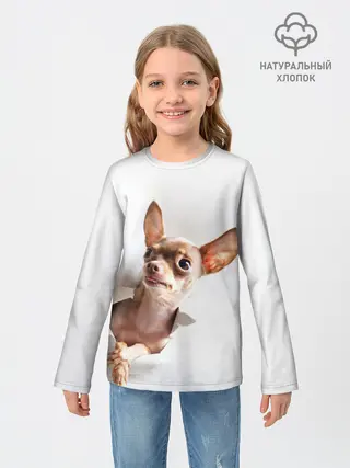 Детский лонгслив / Чихуахуа из бумаги вылазит
