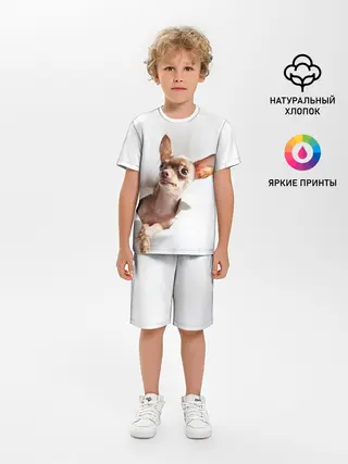 Детская пижама с шортами / Чихуахуа из бумаги вылазит