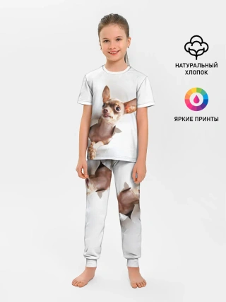 Детская пижама с брюками / Чихуахуа из бумаги вылазит