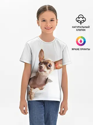 Детская базовая футболка / Чихуахуа из бумаги вылазит