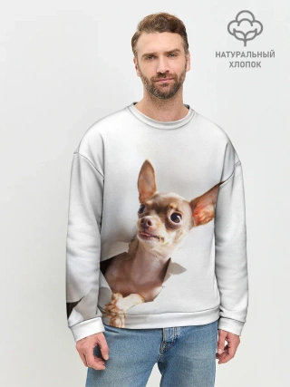 Мужской свитшот базовый / Чихуахуа из бумаги вылазит