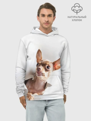 Худи мужской база хлопок / Чихуахуа из бумаги вылазит