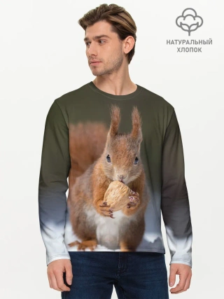 Мужской лонгслив базовый / белка с орехом на снегу