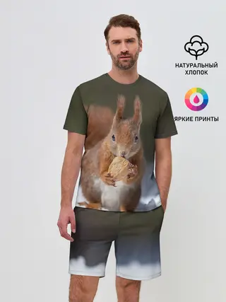 Мужской костюм с шортами / белка с орехом на снегу
