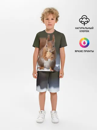 Детская пижама с шортами / белка с орехом на снегу
