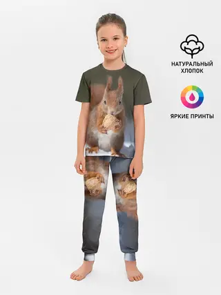Детская пижама с брюками / белка с орехом на снегу
