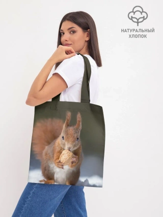 Шоппер база / белка с орехом на снегу