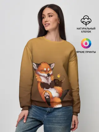 Лонгслив женский. Хлопок / Взрывной характер милого лиса