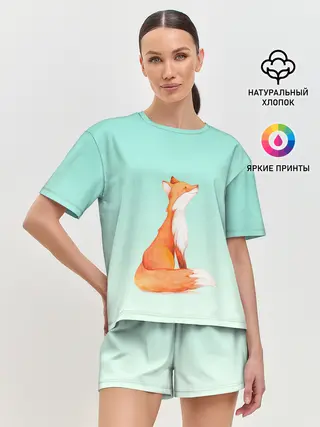 Женская пижама с шортами / нарисованный лисенок