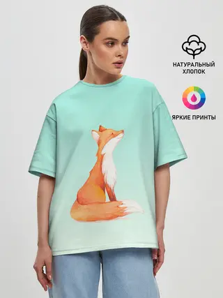 Женская футболка оверсайз / нарисованный лисенок