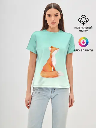 Женская базовая футболка / нарисованный лисенок