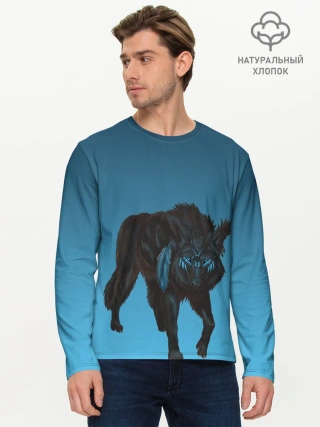 Мужской лонгслив базовый / черный дух волка