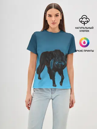 Женская базовая футболка / черный дух волка